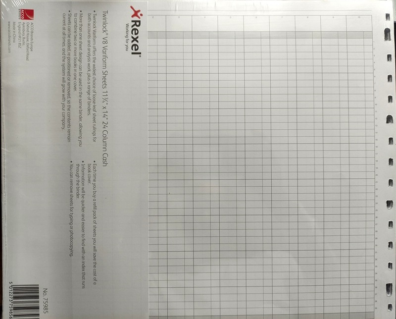 Twinlock Variform V5 8 Column Cash 75962 Pack of 75 Sheets This 8 column cash refill sheets come in a pack of 75. When ordering in combination with any other item on the site there will be delay in the despatch of the entire order by three working days.